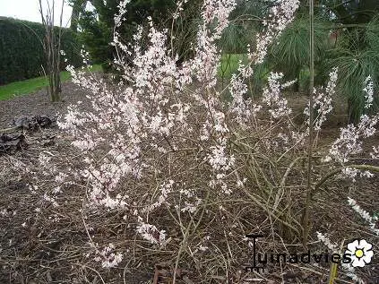 Heeft de bijzonderheid dat hij bloeit aan het einde van de winter, in februari-maart, op de twijgen van het voorgaande jaar en vóór het verschijnen van het loof.