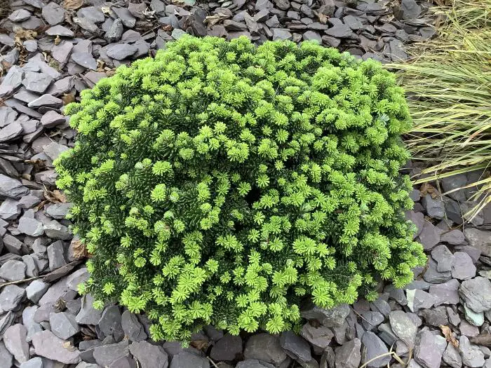 Abies koreana 'Brilliant' is een groene dwergconifeer .