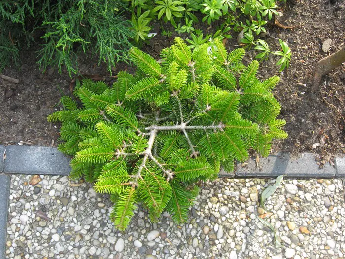 Abies nordmanniana 'Barabits Compact' is een breedgroeiende dwergconifeer met een donkergroene kleur.