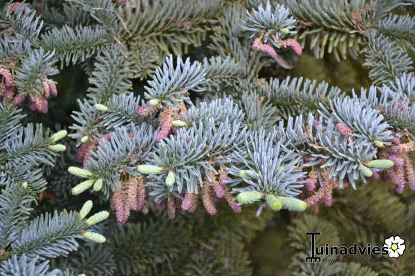 Abies procera 'Glauca' is een zeer traag groeiende spar met grijsblauwe naalden.