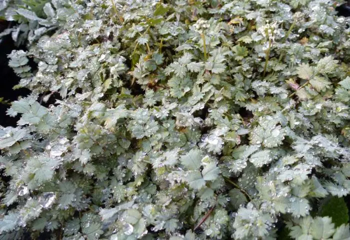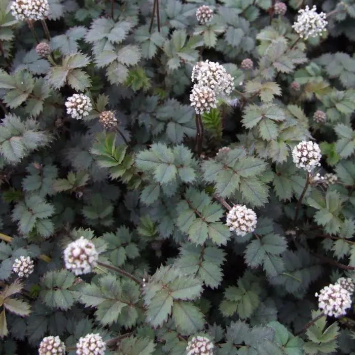 Dit stekelnootje heeft veervormige bladeren groeien breed over de bodem uit en vormen een tapijt van groen tot bronsgroene zoden.