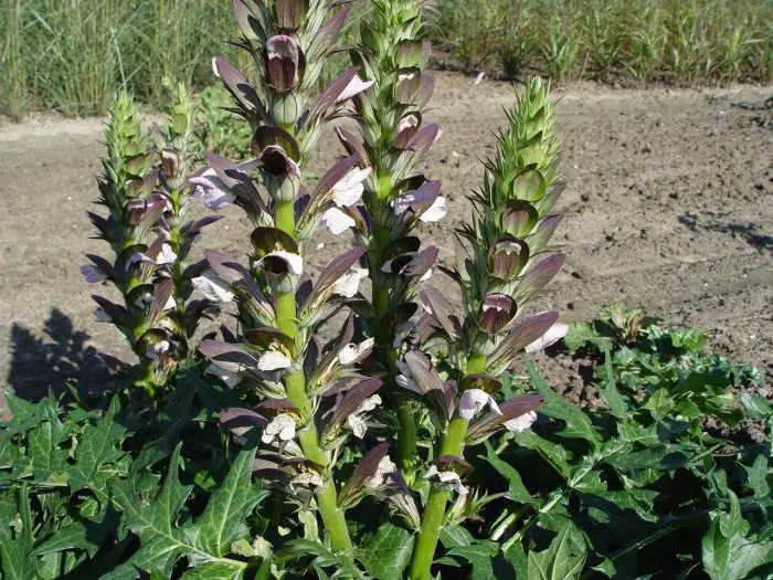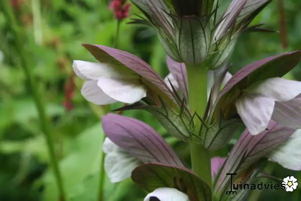 Acanthus 'Hollande du Nord' is een statige vaste plant met een grote sierwaarde die structuur geeft in de tuin met zijn grote bladeren en aarvormige bloemen.