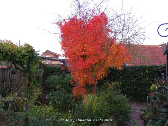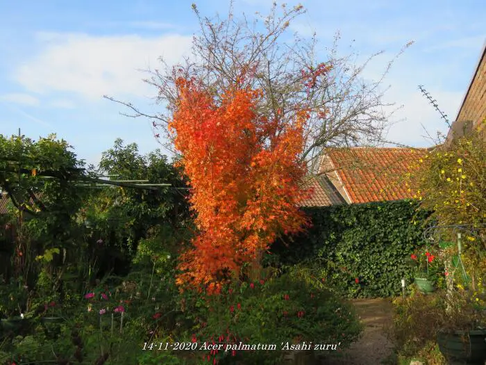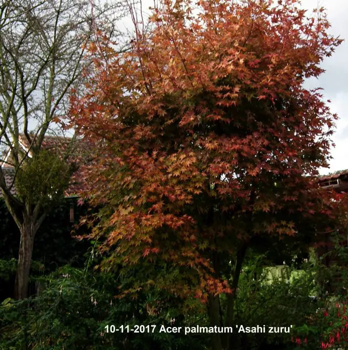 In het najaar kleuren de bladeren in schitterende rode/oranje/gele herfstkleuren met in de winteren rode takken.