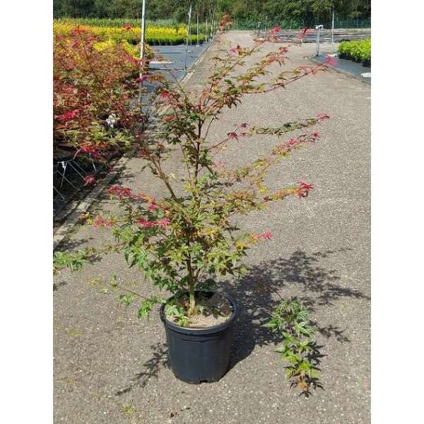 Acer palmatum 'Beni maiko' is een kleine, langzaam groeiende struik met een fijne sierlijke stam, spreidende takken en fijn ingesneden bladeren.