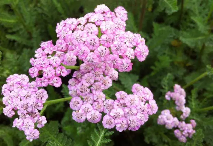 Het is een sterke groeier met prachtig donkergroen geveerd, aromatisch blad en bloeit met afgeplatte schermvormige tuilen van zachtroze bloemen.