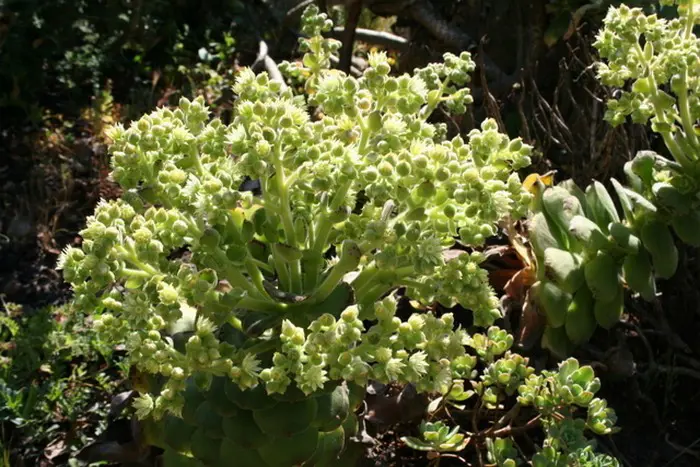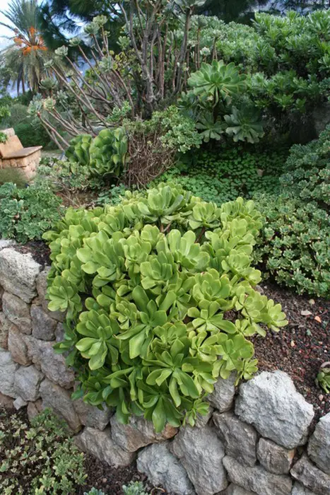 Ze vormen meerdere grote rozetten van succulente bladeren.