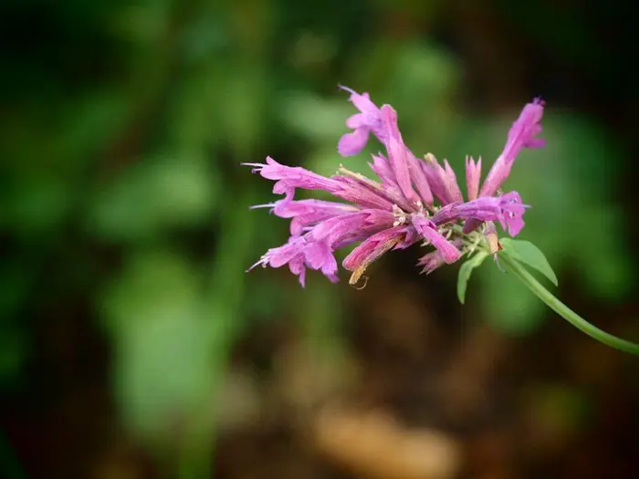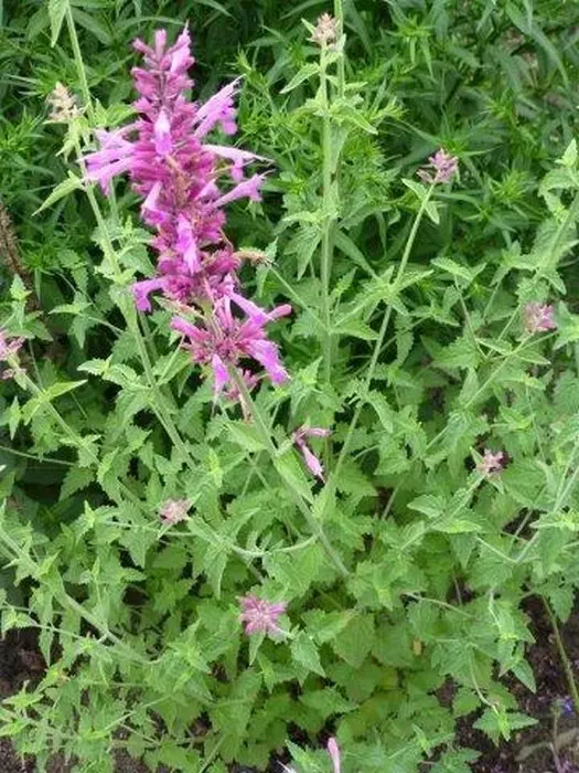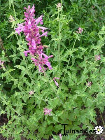 Agastache 'Heatwave' bloeit met dikke aren van paarsroze bloemen.
