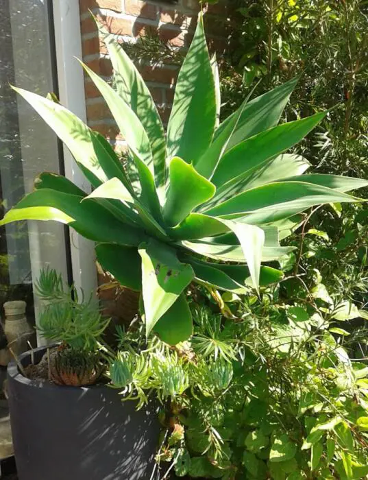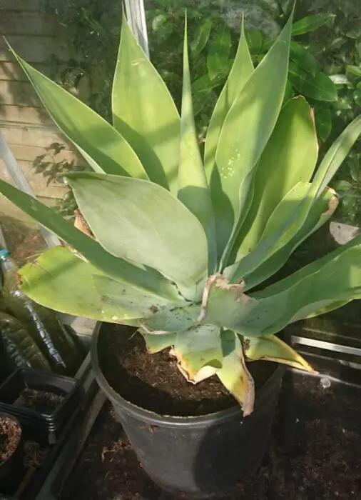 Agave attenuata is afkomstig uit Mexico vormt mooie brede vlezige, bleek grijsgroene tot licht geelgroene bladeren.