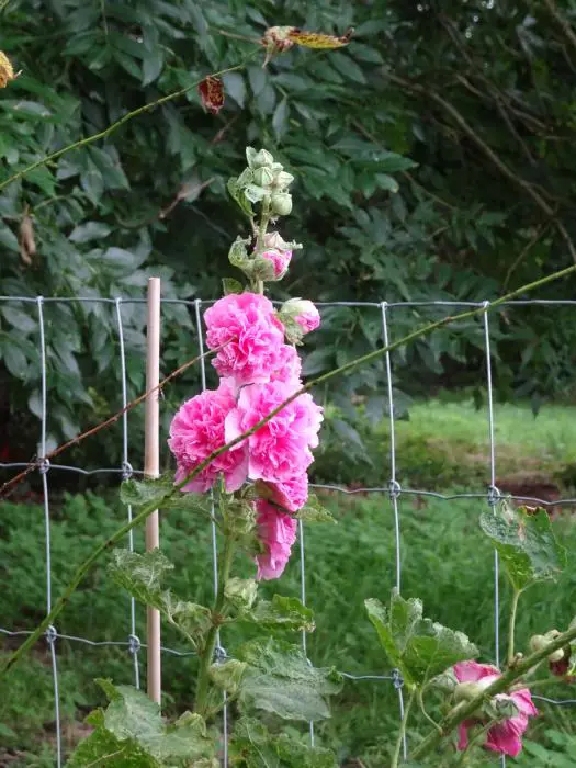 Alcea rosea 'Rosea' best planten op een standplaats uit de wind, anders is aanbinden aangewezen.