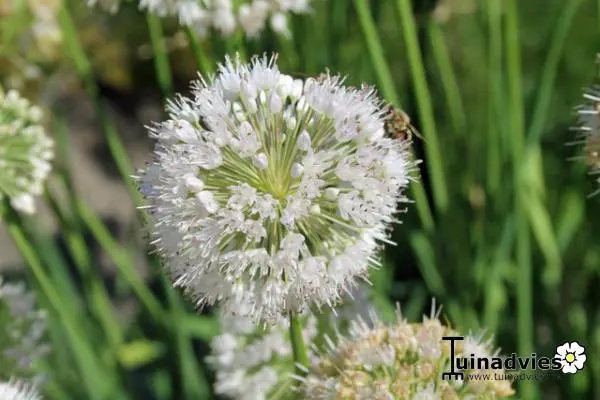 Allium carolinianum is een compacte bolgewas met smal riemvormige, grijsgroene bladeren.