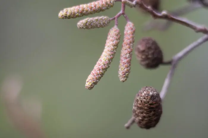 In het vroege voorjaar bloeien katjes aan de boom, na de zomer verschijnen dan de elzenproppen en blijven de ganse winter.