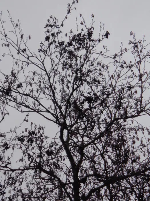 De elzenproppen blijven de ganse winter aan de boom.