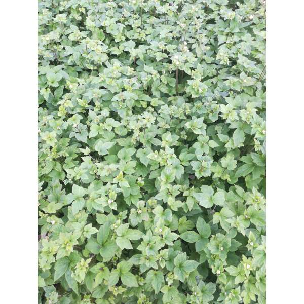 Het blad is aantrekkelijk, donkergroen en gelobd.