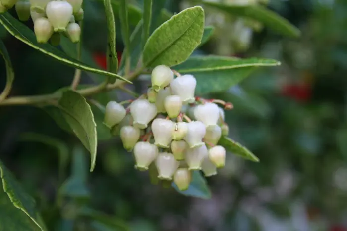 De aardbeiboom heeft zijn benaming te danken aan de rode op aardbeien lijkende vruchten die de sierheester sieren.