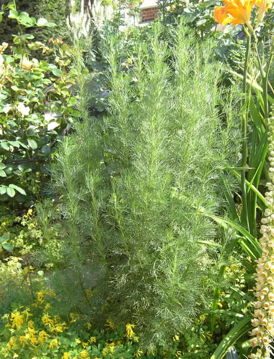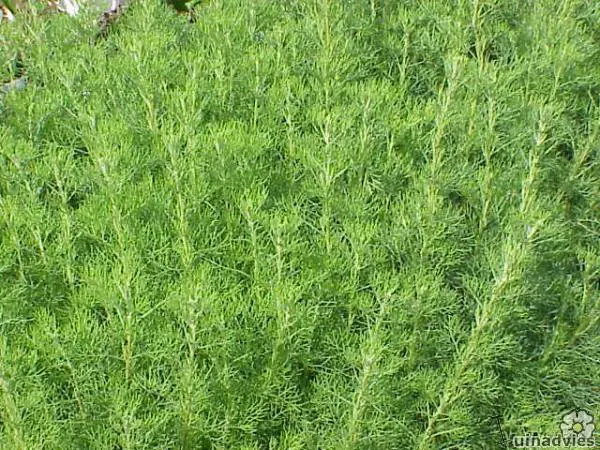 Artemisia abrotanum heeft een recht opgaande en bossige groeiwijze met zilvergrijsgroene fijngevederde bladeren.