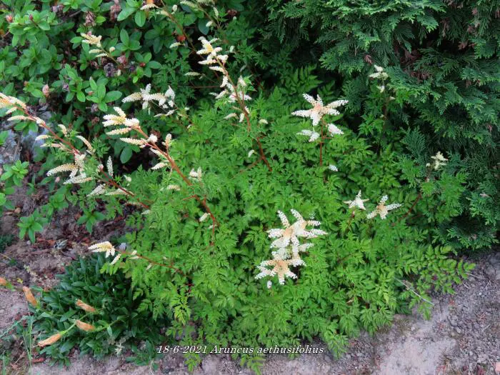 Aruncus aethusifolius is een kleinere geitenbaard afkomstig uit Korea met een compacte groei.