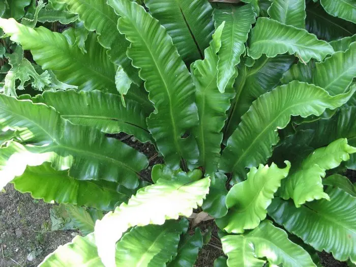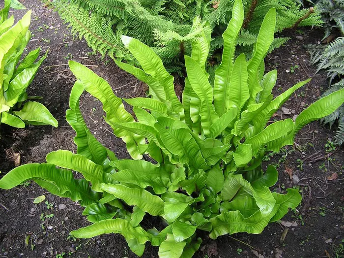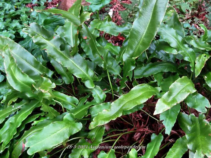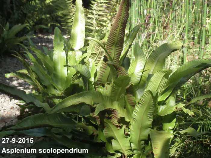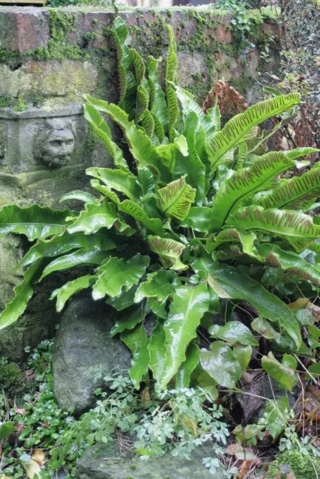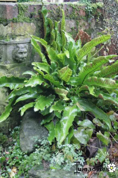 Asplenium scolopendrium is een mooie groenblijvende varen met grote langwerpige, tongvormige glanzende bladeren .