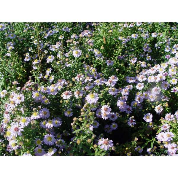 Aster ericoides 'Blue Star' Aster ericoides 'Blue Star' is een vrij compacte variëteit met een overhangende groeiwijze van rijkbloeiende pluimen van kleine licht lavendelblauwe bloemen met een bruin hart.