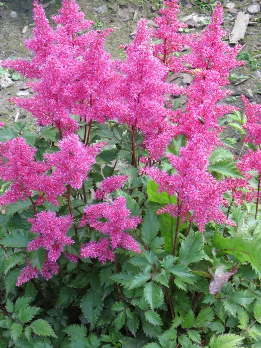 Een waardevolle plant met mooi gevederd blad en pluimvormige karmijnroze bloeiwijze.
