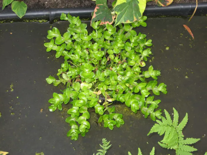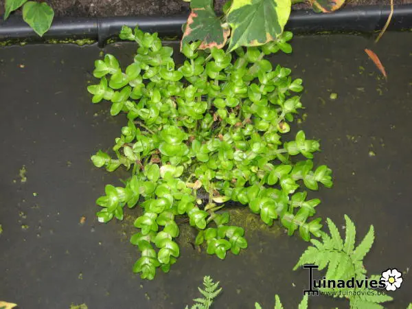 Bacopa caroliniana is een aquariumplantje met groene bladeren dat roder kleurt bij fel licht.De bloei is blauw.