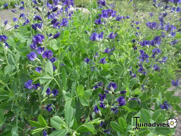 Heeft een op lupine gelijkende bloeiwijze maar is veel steviger en blijft ook na de bloei mooi en zonder ziektes, daar waar lupines net bladluisgevoelig zijn. Ze hebben mooi blauwgroen klaverachtige bladeren.