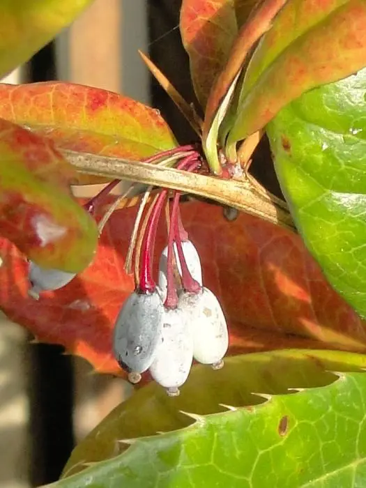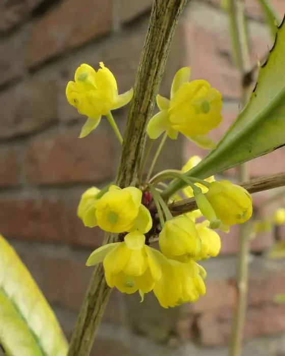 Berberis julianae is een zeer stekelige, compacte en zeer dichte struik met licht overhangende takken en glanzende donkergroene blaadjes die rood verkleuren bij koud weer.