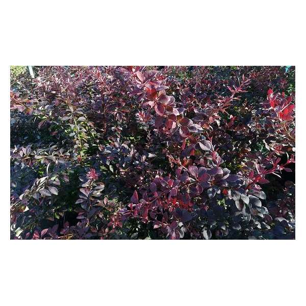 Berberis thunbergii f. atropurpurea is een prachtige doornige, bossige struik met kleine ronde, glanzende diep roodpaarse blaadjes die in de herfst dieprood kleuren.