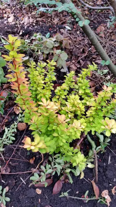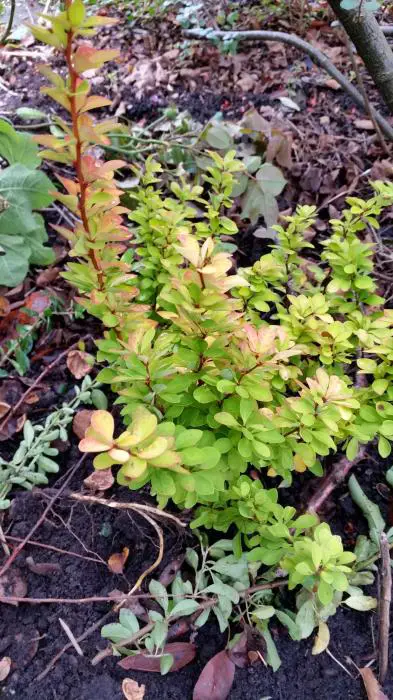 De Berberis thunbergii 'Maria' is een doornige struik met een zuilvormige groei.