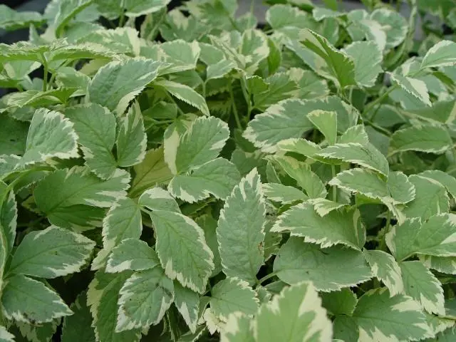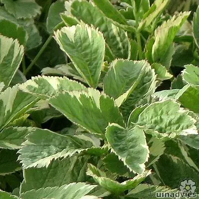 Deze soort groeit minder sterk dan het gewone zevenblad. Groeit goed in de schaduw. Onregelmatig wit gerand blad.