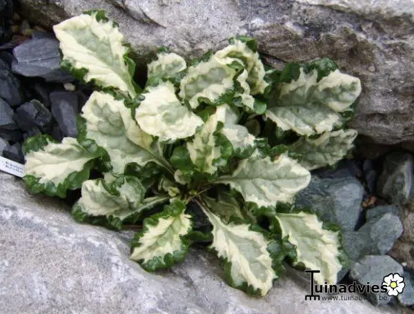 Het is een waardevolle mooie bodembedekker met glanzende donkergroene bladeren met onregelmatige cremewitte randen.