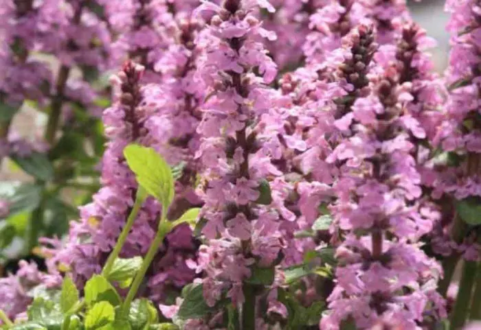 Ajuga reptans 'Purple Torch' is een kruipende vaste plant met korte aren samengesteld uit kleine paarsroze bloemen