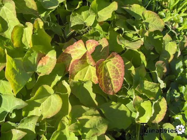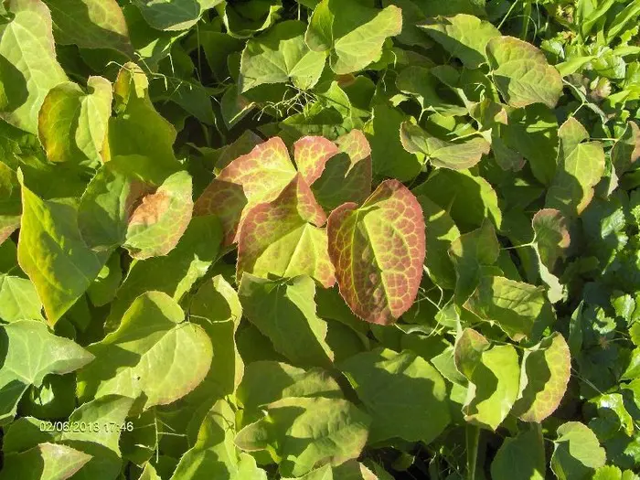Epimedium pubigerum heeft groenblijvende groene bladeren.