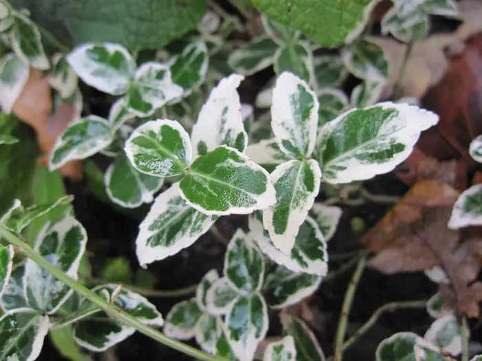 'Emerald Gaiety' heeft wit gerande groene bladeren met een opgaande groeiwijze, klimmend tegen muren.