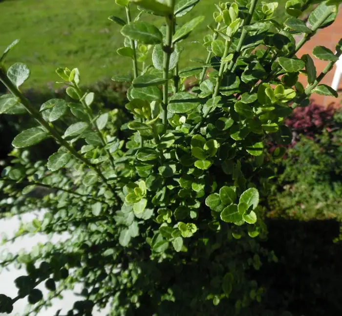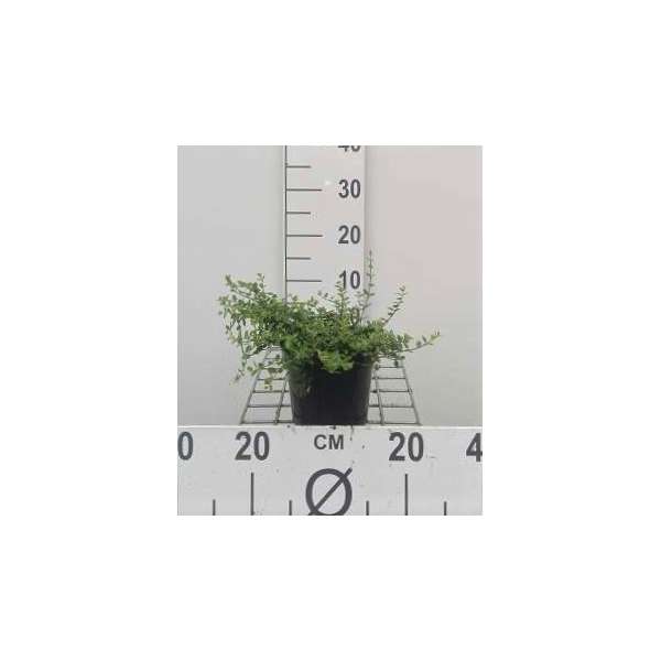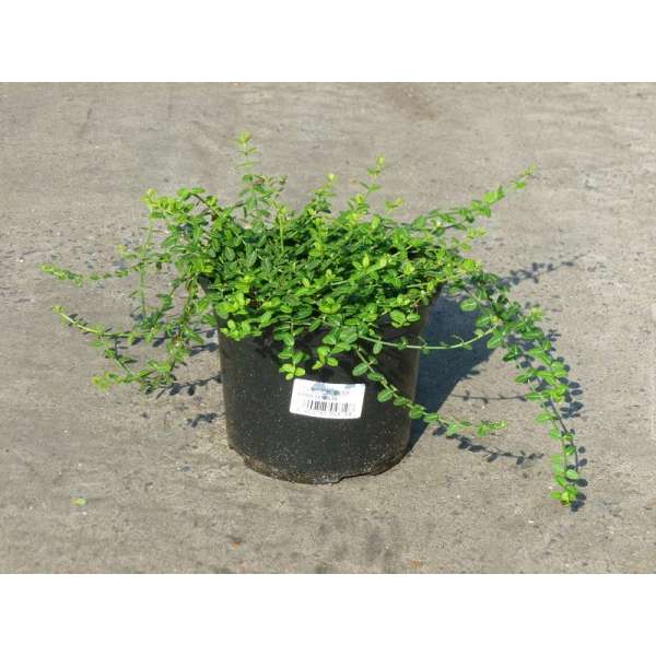 Een breeduitgroeiend dwergstuikje met glanzend groen blad.