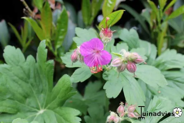 Geranium macrorrhizum 'Bevan's Variety' is een snelgroeiende geranium vertoont een compacte, kruipende groeiwijze d.m.v. rizomen en vormt een uitstekende bodembedekker, zelfs tussen boomwortels. Is vooral mooi in grote groepen.