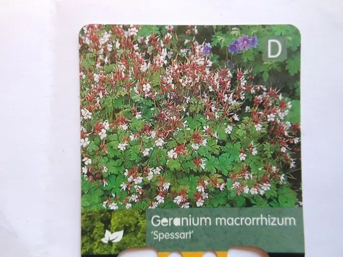 Geranium macrorrhizum 'Spessart' is een snelgroeiende ooievaarsbek met een zeer aromatisch blad en is vooral mooi in grote groepen. Het blad is handvormig en zacht behaard met een prachtige rode/oranje herfstkleur. In zachte winters blijft het blad aan de plant.
