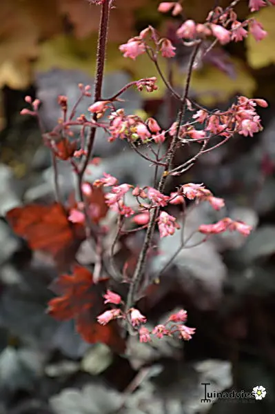Heuchera's wortelen vrij oppervlakkig en dienen dus iets dieper dan de kroon geplant te worden.