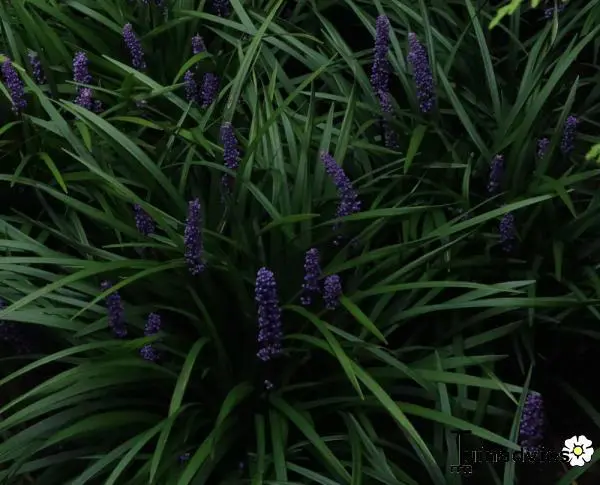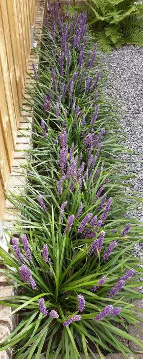 Liriope muscari 'Ingwersen' heeft een mooi wintergroen grasachtig blad dat fijner is dan de soort.
