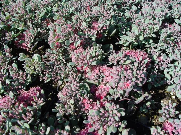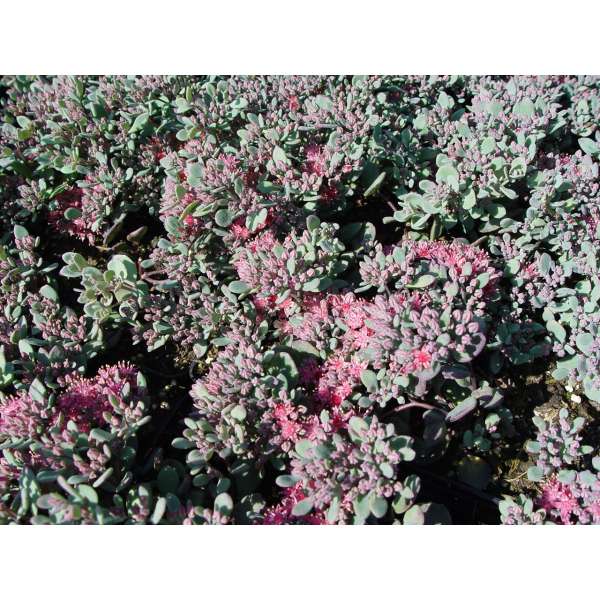 Hylotelephium cauticola 'Lidakense' is een rotsplantje met prachtige frambozenroze bloemschermen en grijsblauw sappig blad met een rode rand.