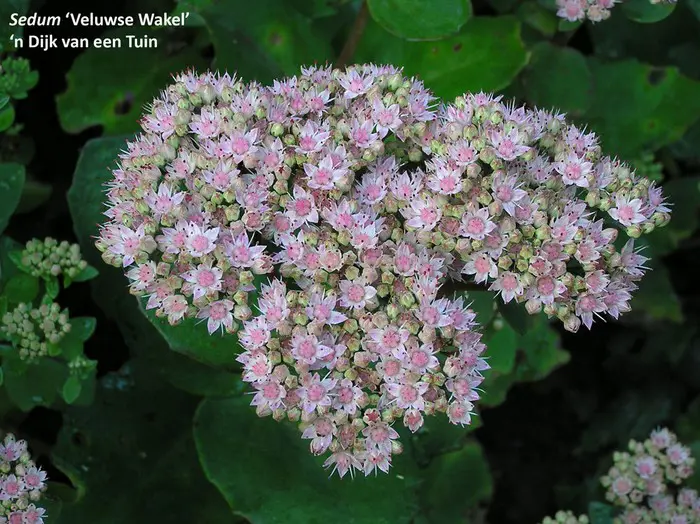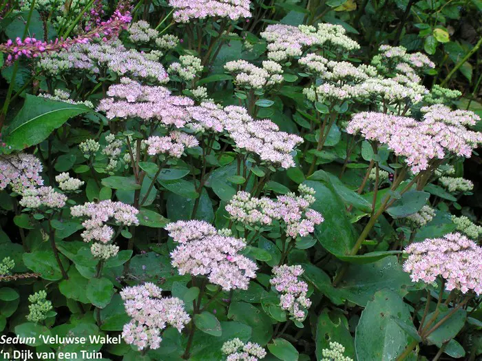 Sedum 'Veluwse Wakel' is te vergelijken met Sedum 'Matrona' maar met lichtere bladkleur en wordt iets hoger.