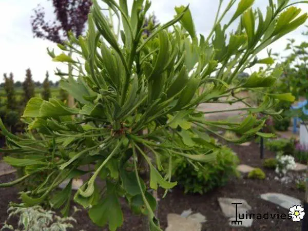 Dit zie je pas als de Ginkgo begint te bloeien en dan vruchten krijgt maar deze cultivar is mannelijk.