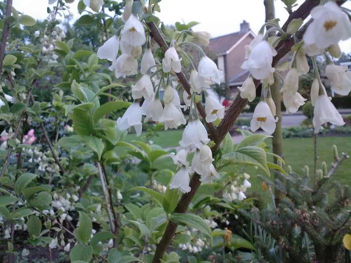 Bloeiend met witte bloempjes die op sneeuwklokjes lijken.