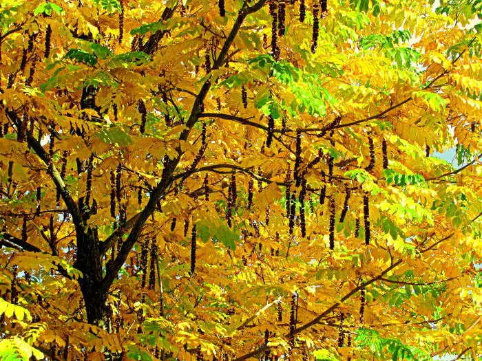 Het blad is oneven geveerd, olijfgroen van kleur en krijgt in het najaar een prachtige goudgele herfstkleur.