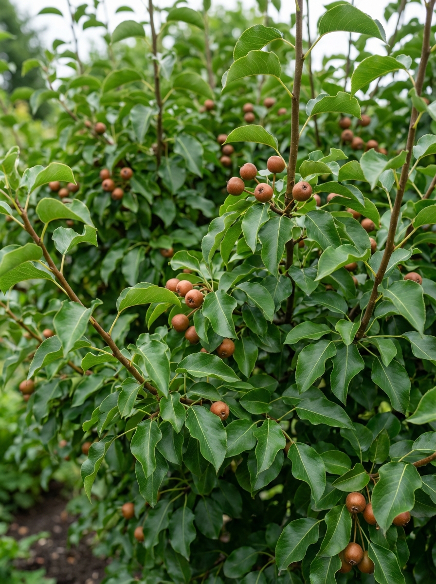 Pyrus calleryana 'Chanticleer' heeft een ovale halfopen kroon met glanzend blad.