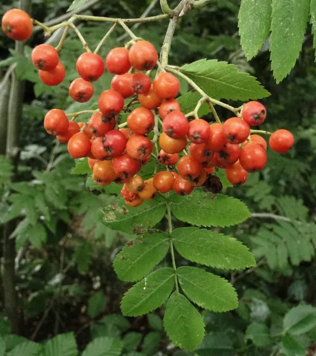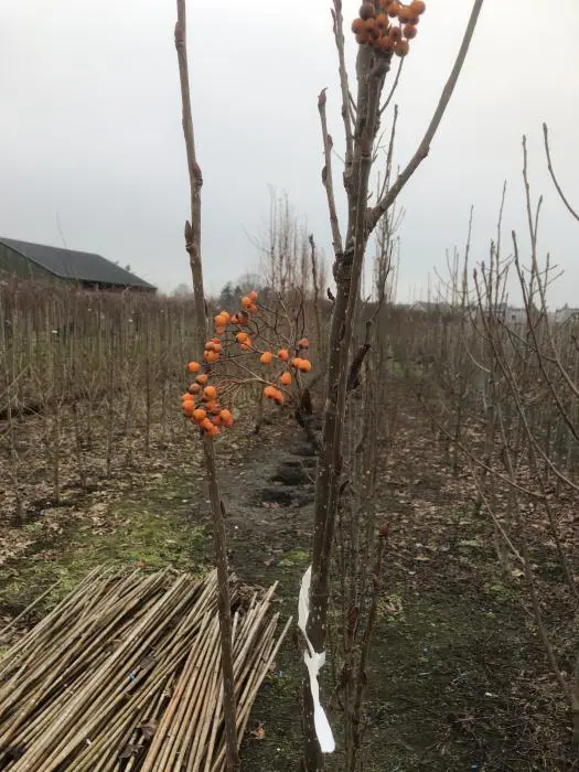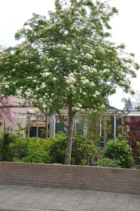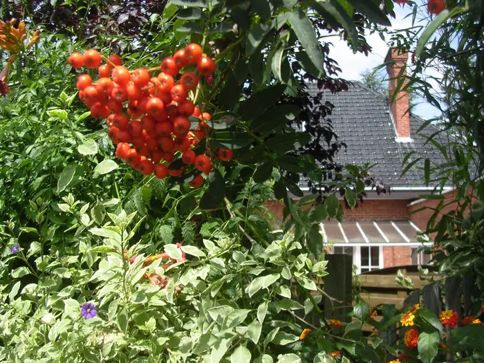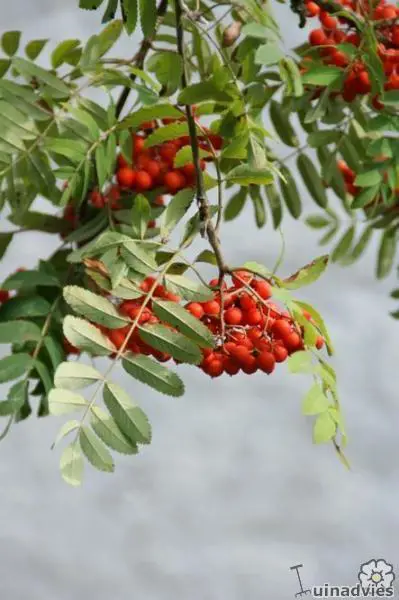 In augustus/september verschijnen de oranjerode vruchten in dikke trossen en het zijn de bessen die de boom tenslotte decoratief maken.