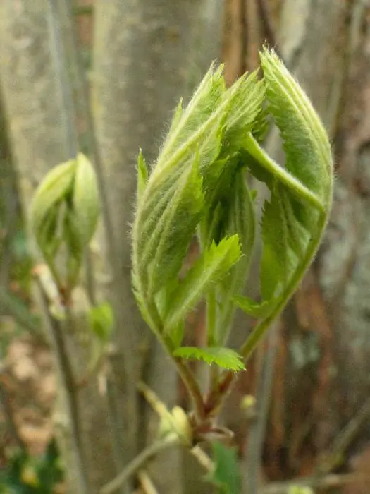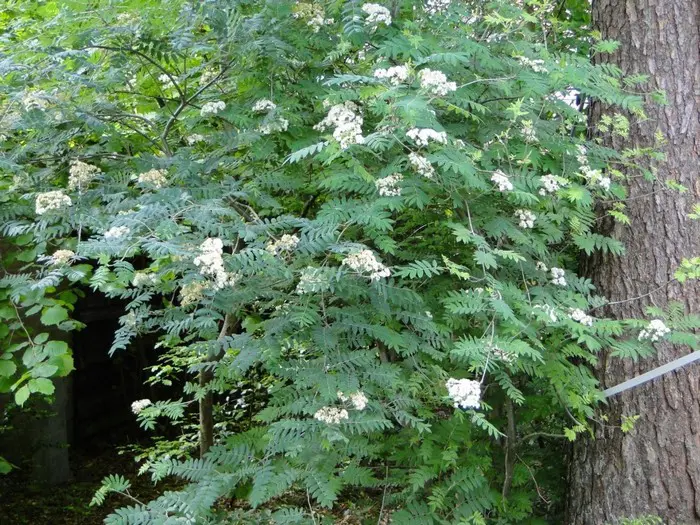 De bladeren zijn samengesteld uit een groot aantal kleine blaadjes en verkleuren in het najaar geeloranje.