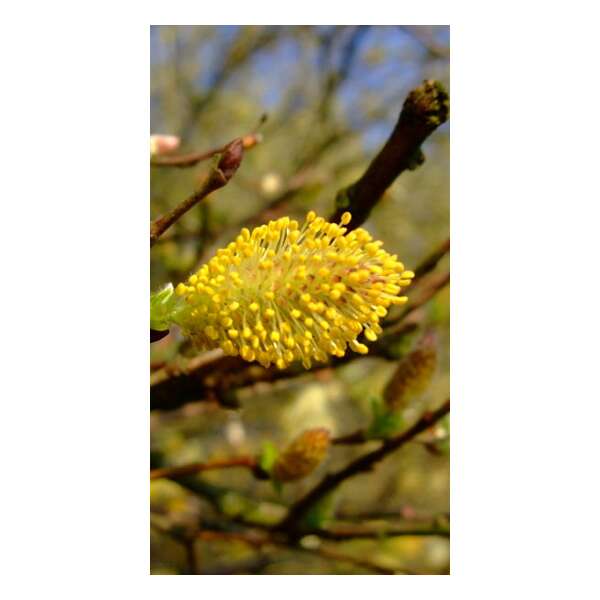 In het voorjaar voor het blad, verschijnen rode katjes. De witte bloei geurt naar honing en trekt dan ook veel bijen en vlinders aan.