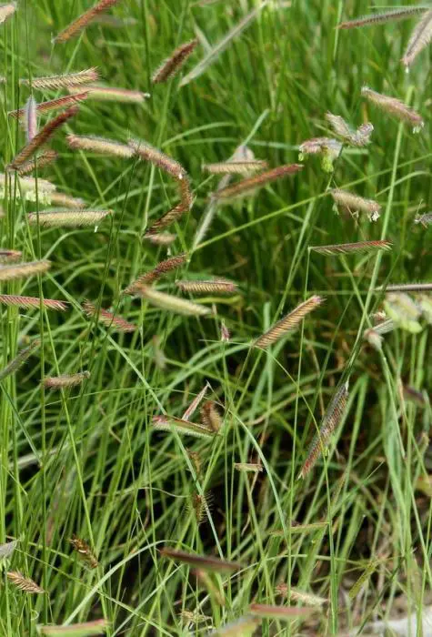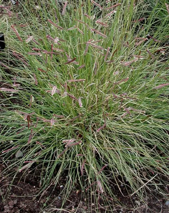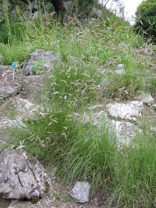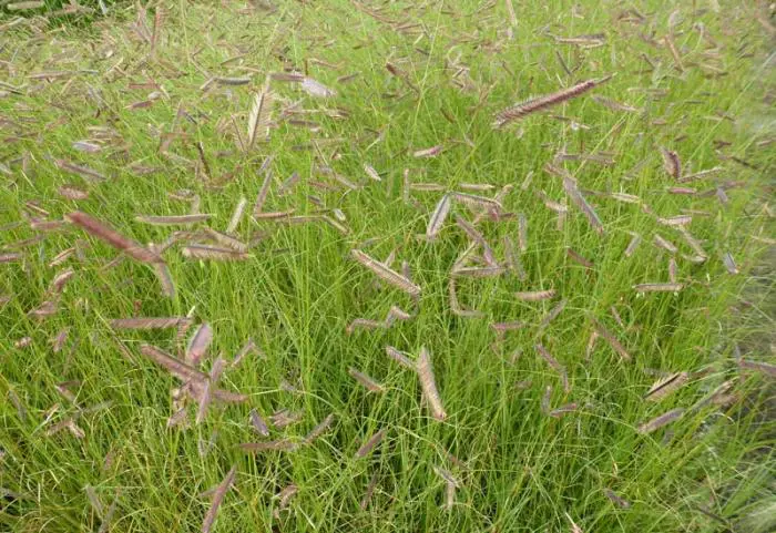 Bloeit met sierlijke halmen waarvan de donkere aren op muskieten lijken.