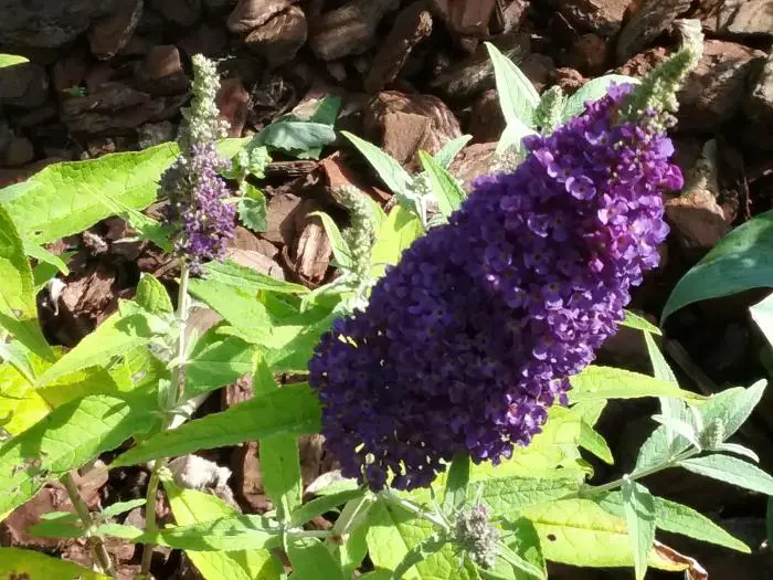 Buddleja davidii 'Buzz Midnight' bloeit donkerblauw tot donkerpaars met grote sierlijk en goed gevulde bloemaren.