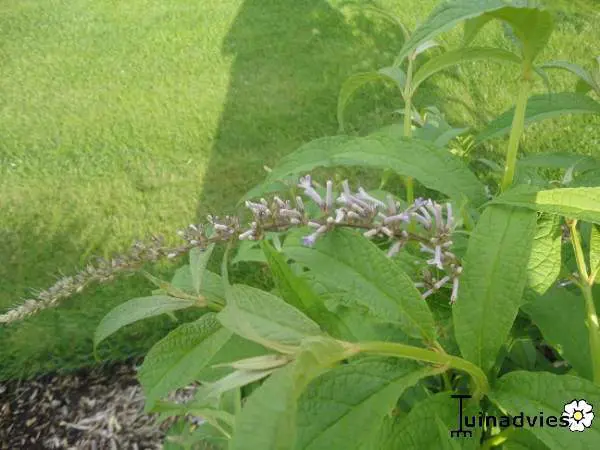 Buddleja japonica bloeit met lavelblauwe pluimvormige bloemen, minder gevuld dan de B. davidii.